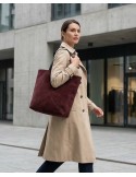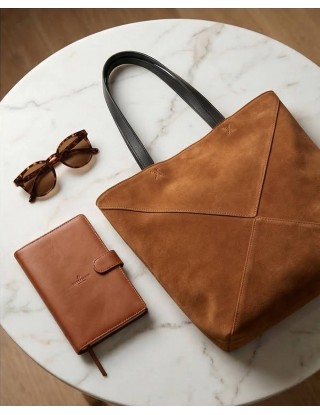 Veći model torbe od brušene kože sa crnim ručkama. Prava, brušena koža pružaju otpornost i sigurnost nošenja. Podstavljena, sadrži malu neseser torbicu za jednostavniju pohranu. Nosiva uz svakodnevne casual i poslovne kombinacije te savršena za putovanja.