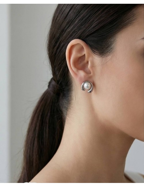 Elegantne srebrne naušnice sa bisernim detaljima, nepravilan oblik, savršeno će upotpuniti vaše svečane i poslovne outfite. Lagane i udobne izrađene od kvalitetnog nehrđajućeg čelika pružaju sigurnost i dugotrajnost nošenja.