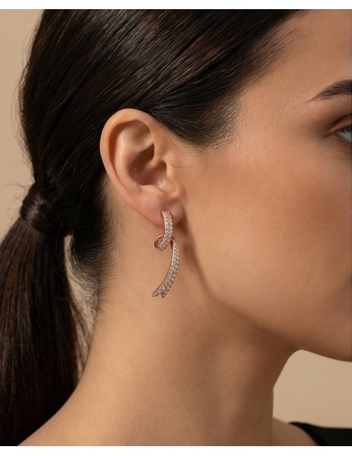 Elegantne viseće naušnice u ružičastoj boji sa cirkonima, savršeno će se uklopiti u vaša svečana izdanja sa elegantnom ogrlicom, narukvicom ili prstenom. Izrađene od nehrđajućeg čelika pružaju sigurnost i dugotrajnost.                                                                                      Proizvedeno u Italiji