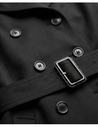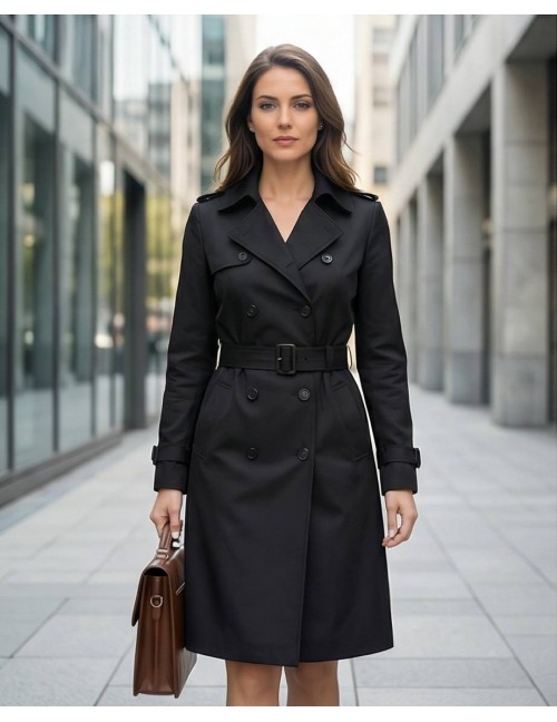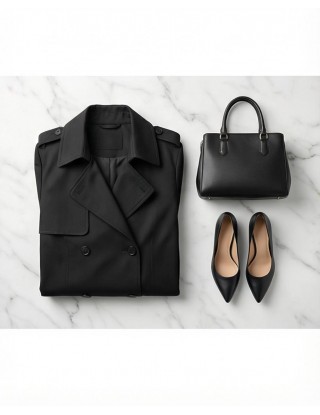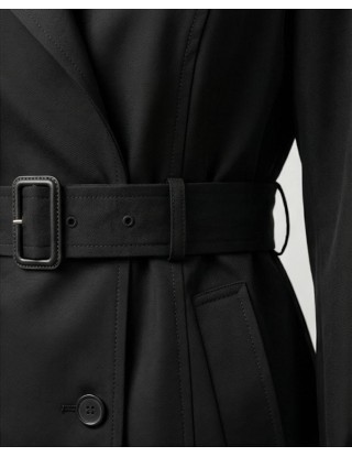 Elegantni crni baloner s dvorednim kopčanjem predstavlja savršen spoj funkcionalnosti i profinjenog stila, dizajniran da naglasi siluetu uz maksimalnu udobnost.