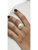Elegantni i upečatljiv prsten sa sjajnim kamenom puderasto roze boje okruglog oblika koji odmah privlači pažnju. Moderan i sofisticiran dizajn s izraženim centralnim detaljem daje mu dozu luksuza i karaktera. Prsten je na gumicu, podesiv i univerzalne veličine, tako da se lako prilagođava svakom prstu. Lako se uklapa uz različite stilove, od svakodnevnih kombinacija do elegantnih outfita.