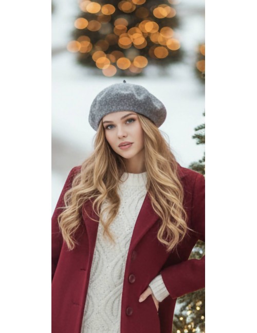 Bezvremenska francuska kapa (beretka) u sivoj boji savršen je modni dodatak za ljubitelje profinjenog pariškog stila. Zbog svog minimalističkog dizajna, lako se uklapa u različite jesenske i zimske odjevne kombinacije, unoseći dozu umjetničke elegancije u svaki svakodnevni izgled.