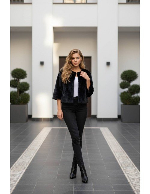 Kratka bunda od umjetnog krzna u klasičnoj crnoj boji idealan je komad za svečane prigode i večernje izlaske. Odlikuje se iznimno mekanom i sjajnom teksturom koja pruža elegantan izgled uz visoku razinu udobnosti. Zbog svog kompaktnog dizajna i luksuznog dojma, ova crna bundica predstavlja bezvremenski dodatak koji svakoj kombinaciji dodaje notu glamura.