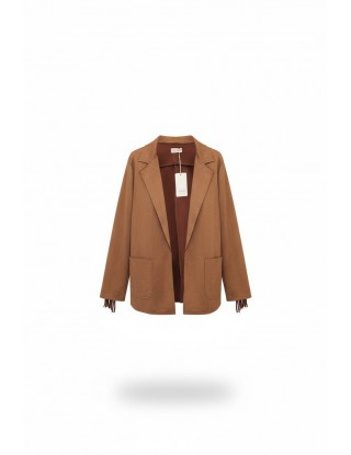 Jaknica u boji konjaka sa dugačkim, gustim resama na rukavima izrađena od materijala vrhunske kvalitete. Rese unose dinamiku i pokret u svaku kombinaciju, čineći ju idealnom za svakodnevne kombinacije, poslovne evente ili trenutke kada želite ostaviti upečatljiv modni dojam. Zahvaljujući svojoj neutralnoj boji, lako se kombinira uz elegantne hlače ili jednostavne haljine, pretvarajući svaki outfit u dizajnersku priču.
