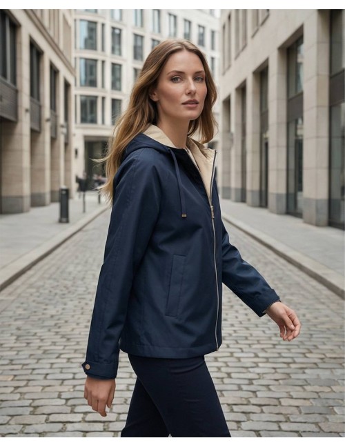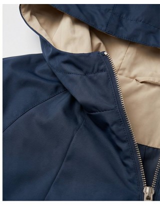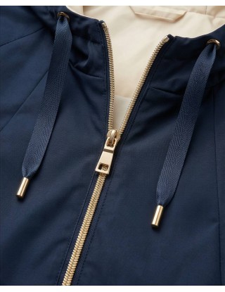 Praktična i moderna jakna u tamnoplavoj boji idealna je za prijelazna razdoblja i aktivnosti na otvorenom. Jakna osigurava maksimalnu udobnost i zaštitu od vjetra te je nezaobilazni komad svake ležerne garderobe.