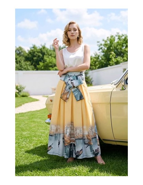 Prekrasna maxi suknja visokog struka naglašena je raskošnom mašnom koja figuri daje profinjenost, dok bogati volumen tkanine stvara elegantnu i lepršavu siluetu. Izrađena od čvršćeg, a opet laganog materijala, idealan je statement komad za sve koji žele spojiti umjetnost i modu.