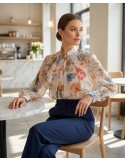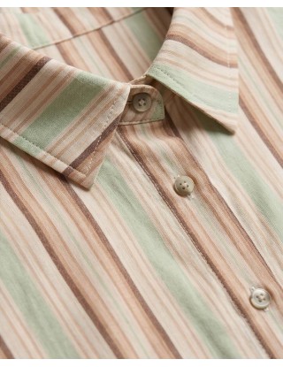 Elegantna košulja na pruge savršen je izbor za moderan poslovni izgled. Lagani materijal i opušten kroj pružaju cjelodnevnu udobnost, dok vertikalne pruge daju dozu profinjenosti i vizualno izdužuju figuru. Izvrsno se slaže uz hlače visokog struka, stvarajući besprijekoran i profesionalan dojam.