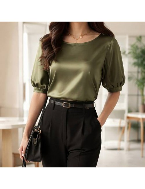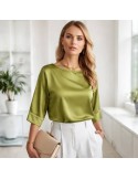 Majica s nježnim sjajnim materijalom idealan je izbor za nošenje ispod sakoa ili kao samostalni elegantan komad. Lagana je, ugodna na koži i savršeno se prilagođava svakom stilu, od poslovnog do večernjeg izlaska.