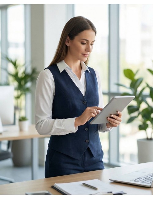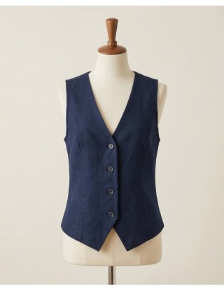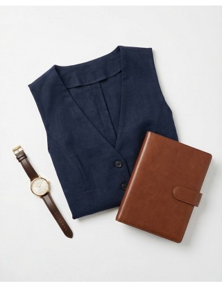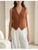 Elegantni prsluk bez rukava od laganog, blago zgužvanog materijala. Ima V-izrez, dugmad sprijeda i moderan kroj koji ističe struk. Idealan za poslovne i svečane kombinacije, lako se uklapa uz hlače ili suknje za sofisticiran izgled.