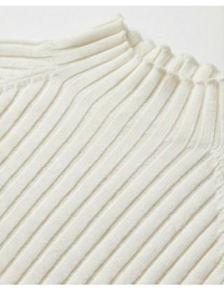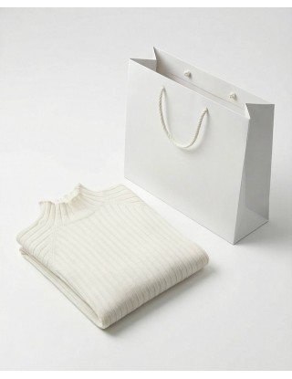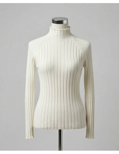 Uska majica u bijeloj boji koja savršeno prianja uz tijelo, ističući figuru na suptilan i elegantan način. Karakterizira je visoki ruski ovratnik i dugački rukavi, što je čini idealnim baznim komadom za slojevito odijevanje tijekom hladnijih dana. Minimalistički dizajn i neutralna boja omogućuju joj nevjerojatnu svestranost, pa se jednako dobro uklapa u stroge poslovne kombinacije ispod sakoa, kao i u ležerna izdanja uz traperice ili suknje visokog struka.
