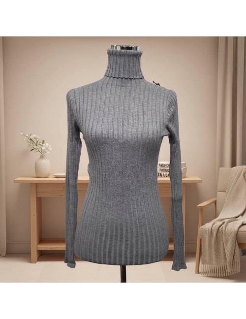 Siva dolčevita od rebrastog pletiva predstavlja vrhunac bezvremenskog stila i čistoće dizajna. Visoki ovratnik i uski kroj koji savršeno prianja uz tijelo čine je izuzetno ženstvenom, dok mekana tekstura osigurava maksimalnu udobnost tijekom cijelog dana. Zbog svoje neutralne boje, služi kao idealna baza za najrazličitije modne priče.