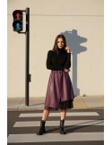 Upečatljiva suknja donosi odvažnu igru materijala i tekstura, spajajući bogatu smeđu umjetnu kožu s nježnim donjim slojem od crnog tila. Njezin moderan dizajn na preklop stvara dinamičnu siluetu koja svakom koraku daje dozu elegancije i volumena, dok elastični struk osigurava maksimalnu udobnost. Savršen je izbor za žene koje žele ostaviti snažan modni dojam, bilo u dnevnim kombinacijama s pletivom ili večernjim izlascima uz visoke potpetice.