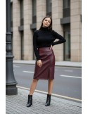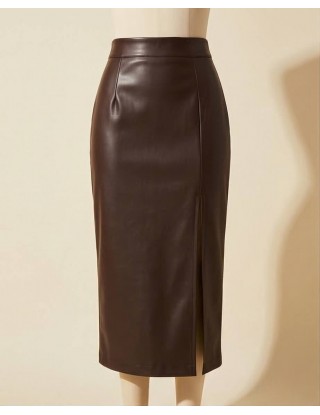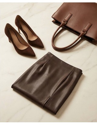 Suknja u bogatoj čokoladnoj nijansi savršen je odabir za postizanje odvažnog, a istovremeno elegantnog izgleda. Njezin minimalistički dizajn i profinjena boja čine ju idealnim komadom za upečatljive poslovne kombinacije ili večernje izlaske uz čizme s visokom petom.