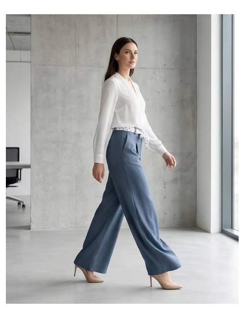 Hlače visokog struka koje spajaju moderan dizajn i vrhunsku udobnost za svaku priliku. Njihov besprijekoran kroj vizualno izdužuje figuru i lako se prilagođava vašem stilu, bilo da ih nosite u poslovnim ili opuštenim varijantama. Nezaobilazan su komad koji jamči eleganciju i slobodu pokreta tijekom cijelog dana.