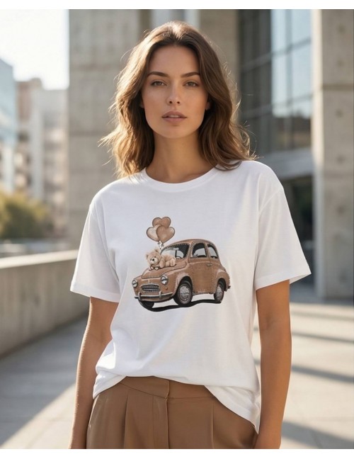 Zanimljva pamučna bijela majica kratkih rukava s ilustracijom. Veseli i opušteni komad koji unosi vedrinu u svakodnevni stil.