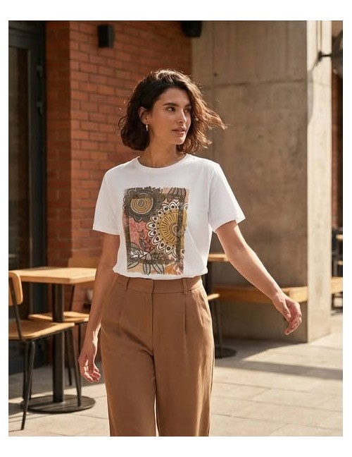Zanimljva pamučna bijela majica kratkih rukava s ilustracijom. Veseli i opušteni komad koji unosi vedrinu u svakodnevni stil.