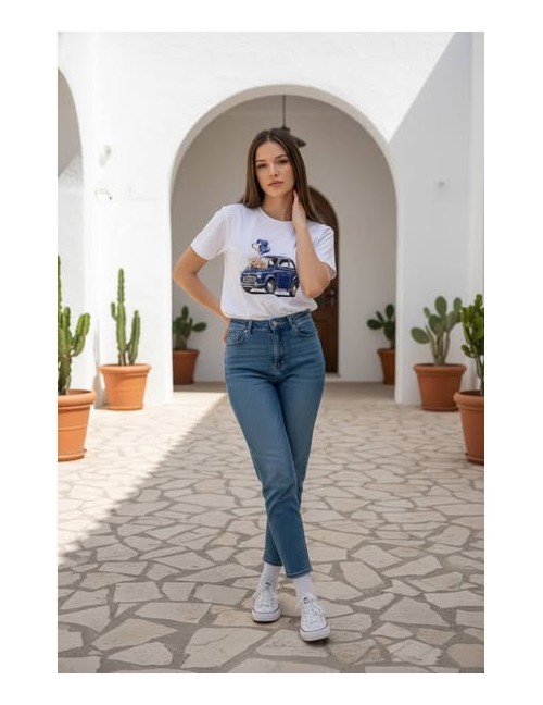 Zanimljva pamučna bijela majica kratkih rukava s ilustracijom. Veseli i opušteni komad koji unosi vedrinu u svakodnevni stil.