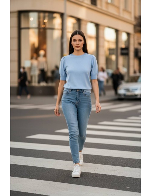 Mekana pletena majica idealan je komad za osvježavanje svakodnevnog stila. Odlikuje se klasičnim okruglim izrezom i udobnim krojem koji se savršeno uklapa u sve proljetne i ljetne kombinacije.