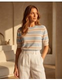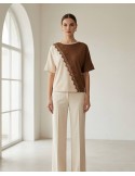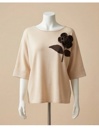 Udobna majica šireg kroja ističe se ukrasnim smeđim cvijetom. Lagani "šišmiš" rukavi pružaju opušten izgled i čine ju idealnom za svaki dan.
