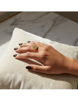 Unikatan prsten izrađen od visokokvalitetnog nehrđajućeg čelika predstavlja savršen spoj izdržljivosti i vrhunske estetike koja ne blijedi s vremenom. Njegov odvažan i predimenzioniran dizajn osmišljen je za ljubitelje upečatljivog nakita koji služi kao središnji dio svake modne kombinacije. Pažljivo oblikovana tekstura i skulpturalne linije pružaju moderan, umjetnički izgled, dok čvrstoća materijala jamči otpornost na tamnjenje i svakodnevno nošenje.