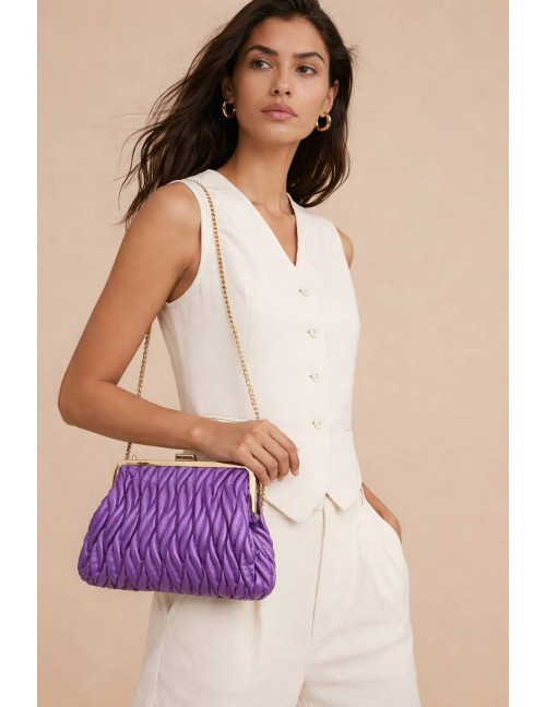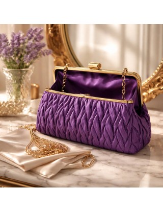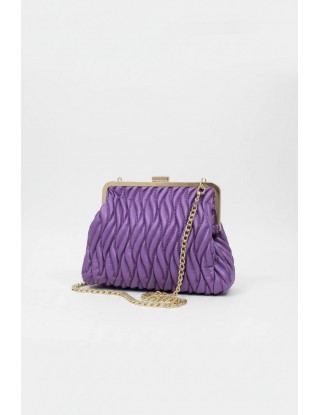 Svečana torbica , ljubičaste boje sa zlatnim detaljima , ima pripadajući dugi remen